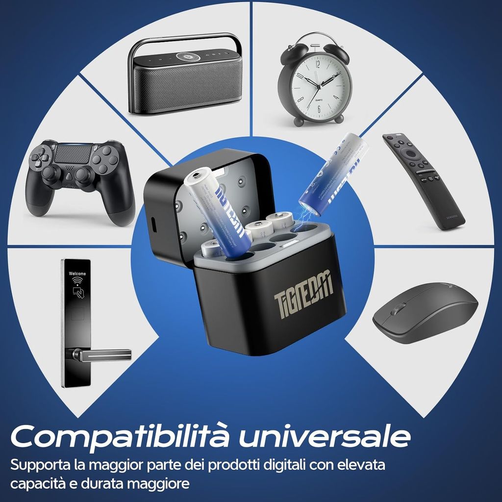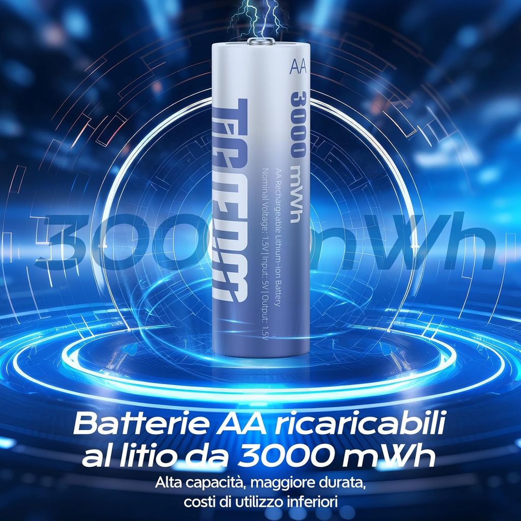 Rechargeable Lithium Batteries AA with Charger, 3000 mWh High Capacity 1.5 V AA Batteries, Long Lasting AA Li-ion Battery with Integrated Charging Storage Box, Quick Charging, Pack of 8