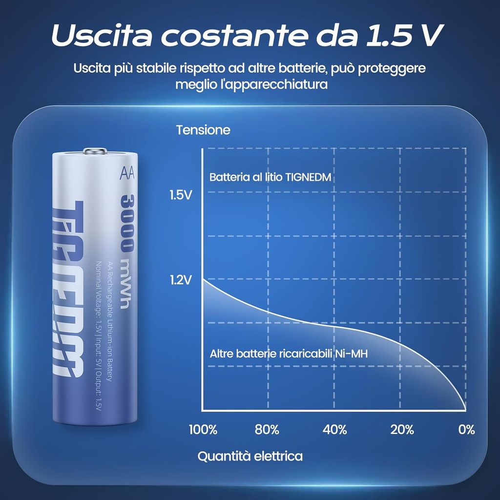 - Constant voltage of 1.5 V: Built-in intelligent constant voltage charging chip that accurately controls the charging process and effectively prevents damage to the battery due to voltage fluctuations when charging and discharging. Extends battery life. After several charge and discharge cycles, the battery capacity indicates minimal deterioration and maintains a long service life