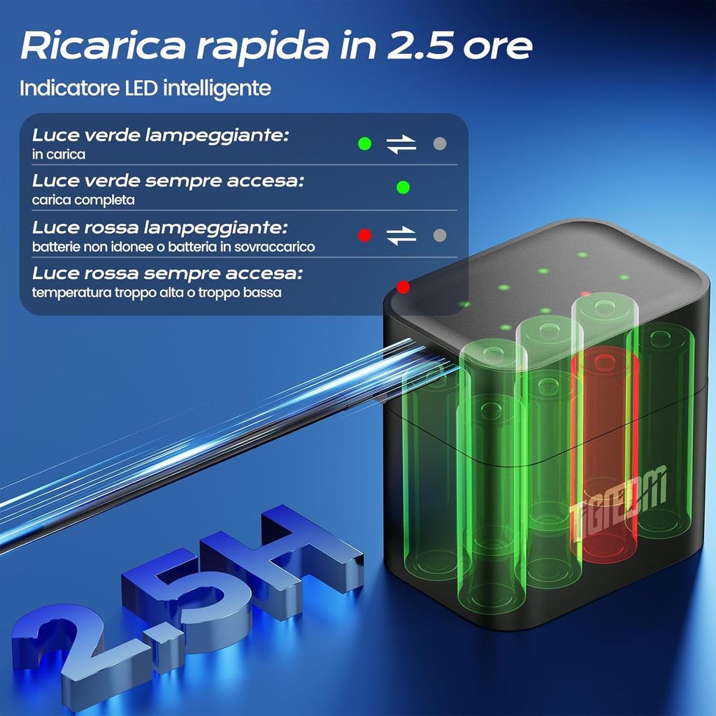 - 2.5H fast charging technology: 2.5 hours fast charging, can charge 1-8 AA lithium batteries, reduce waiting time. The Type-C charging port is suitable for a variety of interface inputs, you can use laptop, car charger, mobile power supply, adapter, etc. to charge the battery, make charging more flexible. (Note: Preferably with a 5V 3A adapter, do not use a 1.0A adapter).